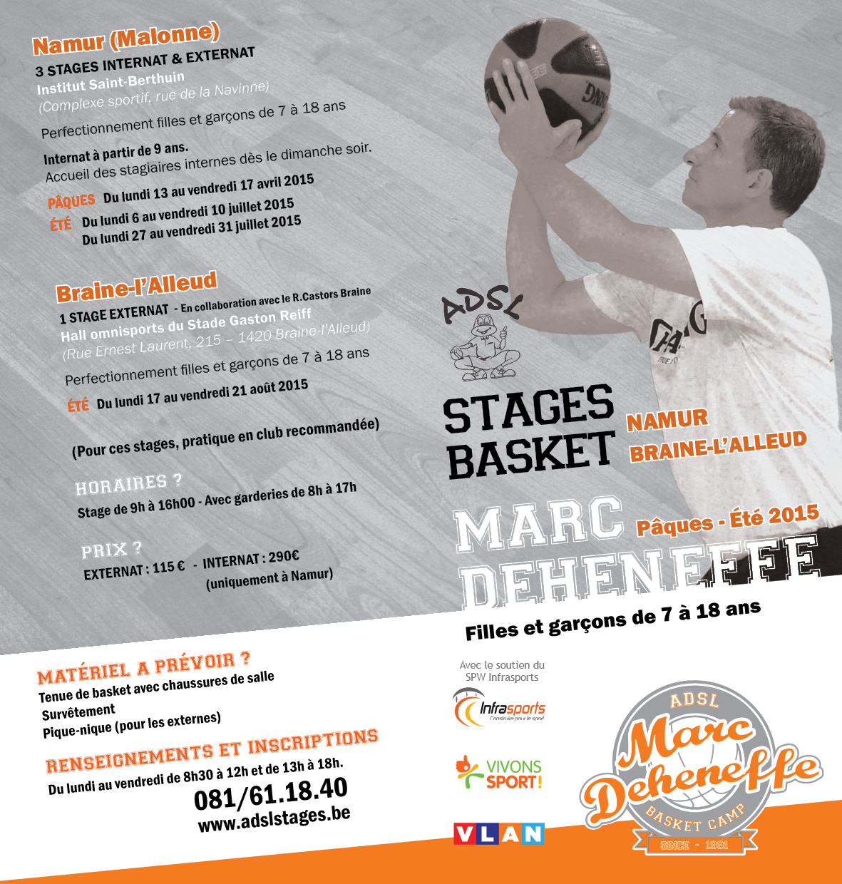 Pour tous renseignements sur les stages adsl à Pâques et en juillet à Malonne, et en août à Braine-l'Alleud dans la brochure ci-dessous ou sur le site www.adslstages.be et au 081/61.18.40