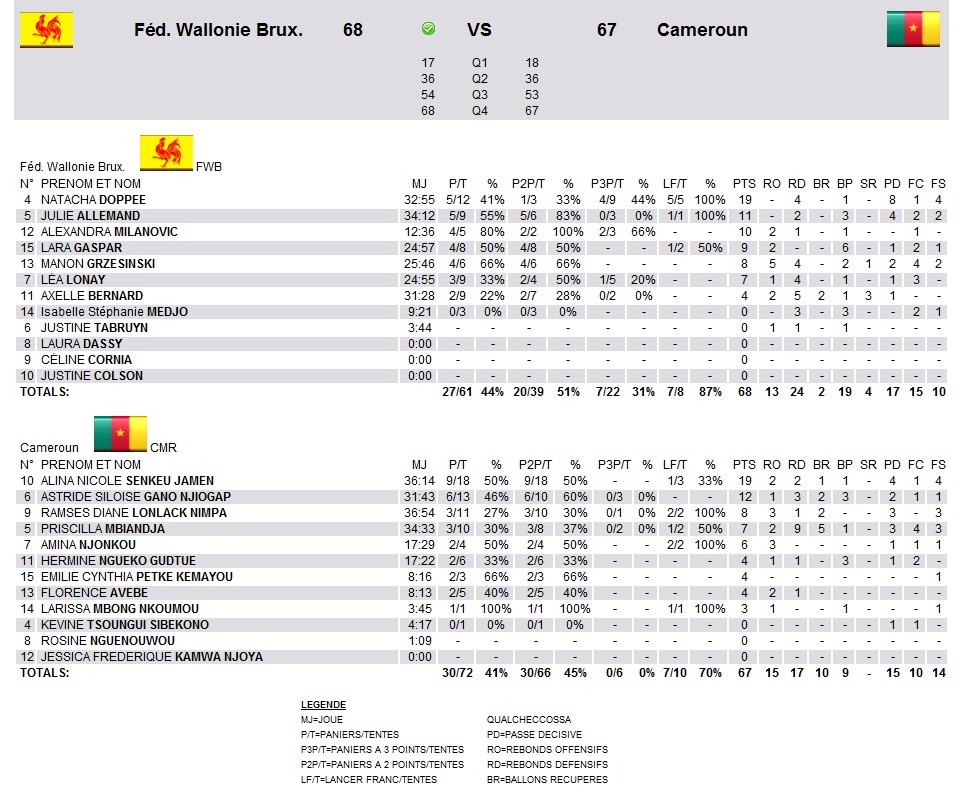 Fédération Wallonie-Bruxelles - Cameroun 68-67