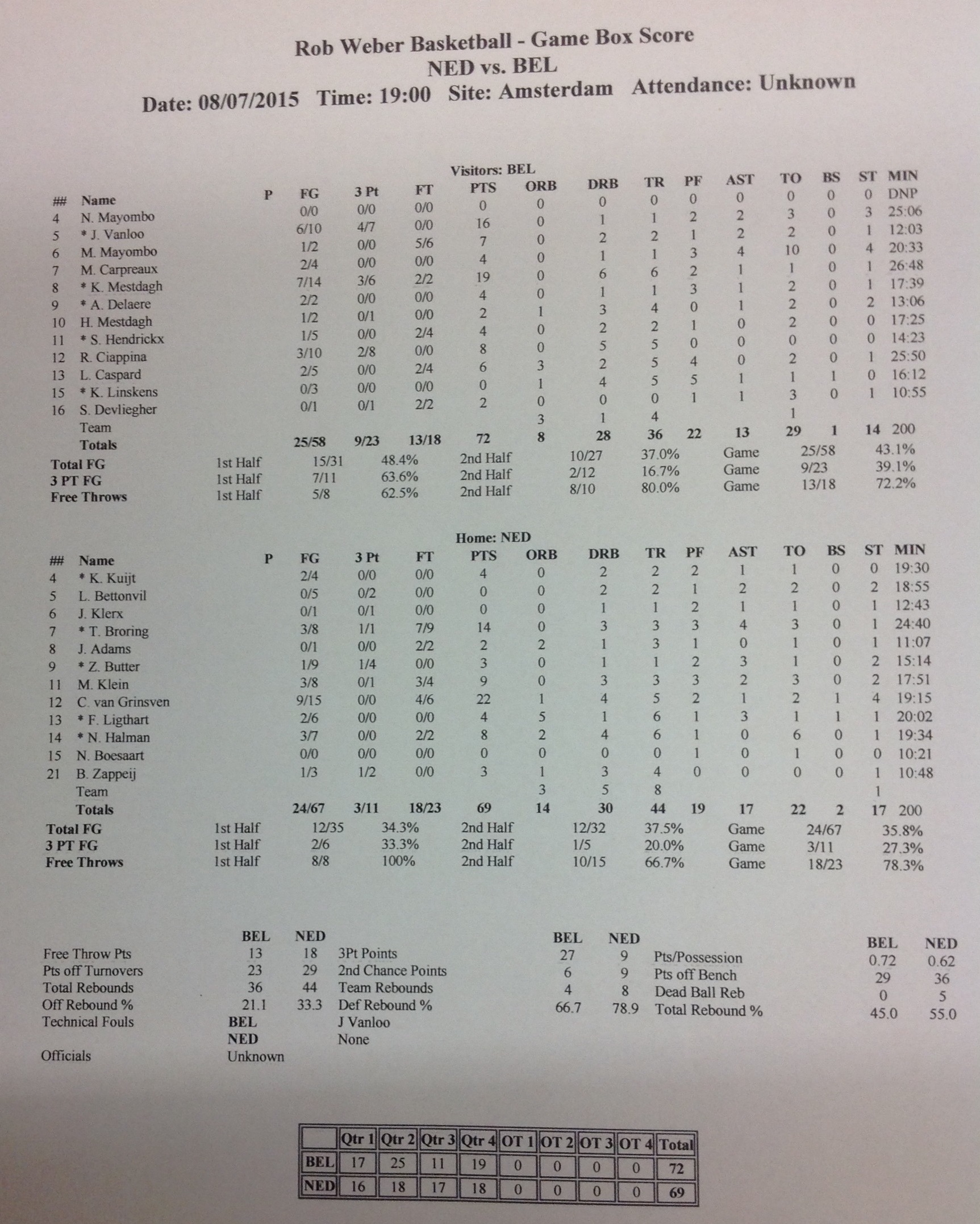 Pays-Bas - Belgium 69-72