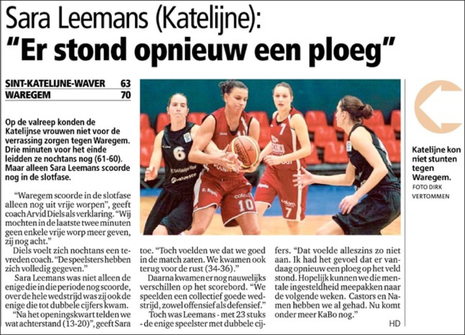 Comme Castors Braine désormais, Declercq Stortbeton Waregem ne compte qu'une défaite, face aux Brainoises précisément. Sint-Katelijne-Waver retenait du positif de sa prestation, comme l'a expliqué Sara Leemans.